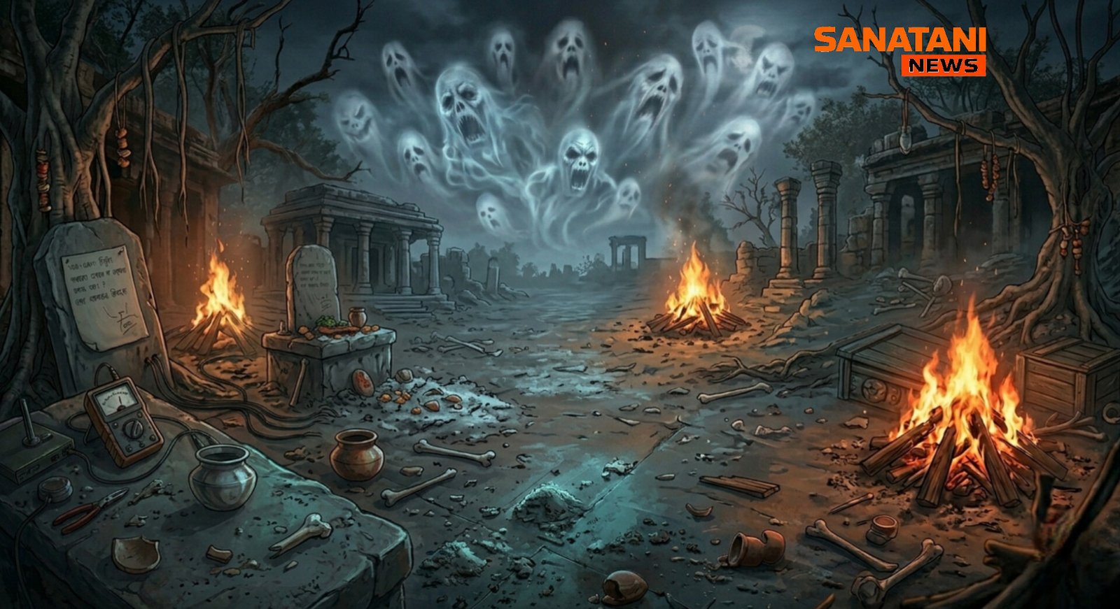 সনাতন বিজ্ঞান বলে, শ্মশান হলো Transition Zone বা রূপান্তরের ভূমি। যেখানে পঞ্চভূত থেকে আত্মা মুক্ত হয়, সেখানে এক বিশেষ ধরণের Electromagnetic Field (EMF) তৈরি হয়।
